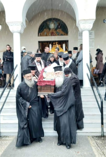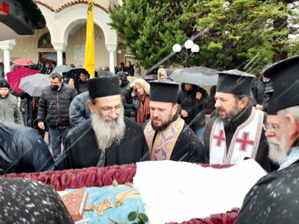 Κατά την εξόδιο ακολουθία παρά την επικρατούσα χιονόπτωση παρέστησαν ο Βουλευτής Ευβοίας κ. Αθανάσιος Ζεμπίλης η Δήμαρχος Χαλκιδέων κ. Έλενα Βάκα πλήθος ενοριτών από την Δροσιά την Χαλκίδα τον Άγιο Ιωάννη Αλιβερίου και πολλά πνευματικά τέκνα του μακαριστού.