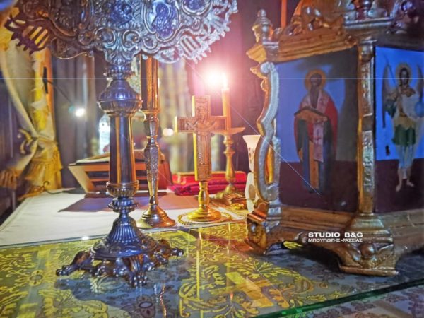 Τον πανηγυρικό εσπερινό τέλεσε ο Εφημέριος του Ιερού ναού Παναγίας Ναυπλίου π. Διονύσιος Ταμπάκης.