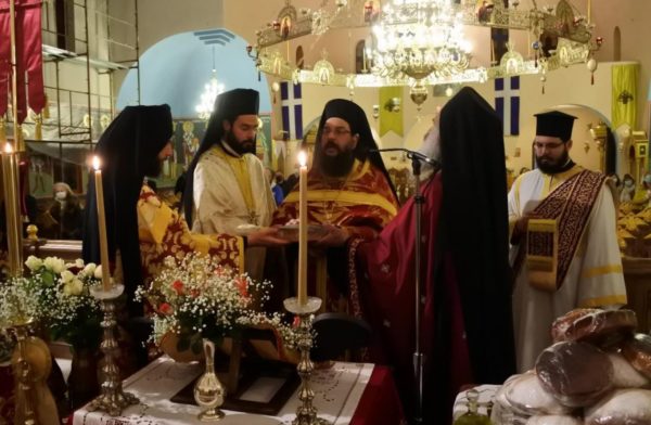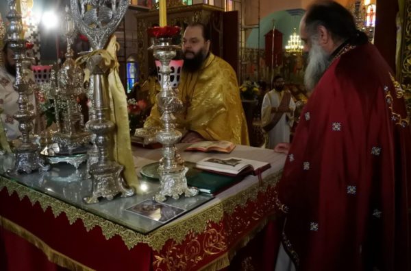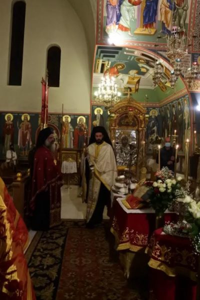 Να σημειωθεί ότι η σημερινή ημέρα συμπίπτει με τα εγκαίνια του Ιερού Ναού και της ελεύσεως του αντιγράφου της εικόνος της Παναγίας Εσφαγμένης από τον Ηγούμενο της Ιεράς Μεγίστης Μονής Βατοπαιδίου Αρχιμανδρίτη Γέρων Εφραίμ.
