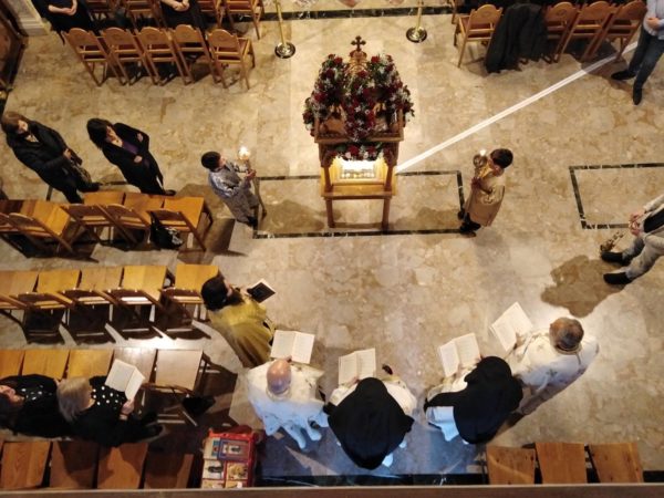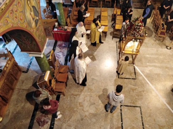 Στο τέλος της θείας λειτουργίας τελέσθηκε η ακολουθία του Μικρού Αγιασμού και ανεγνώσθη ευχή υπέρ υγείας στον Άγιο Νείλο τον Μυροβλύτη.