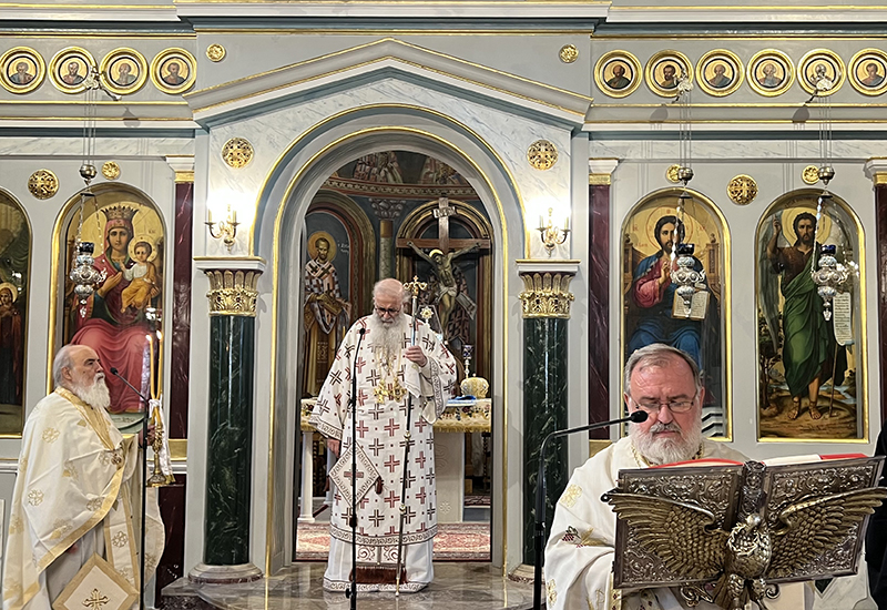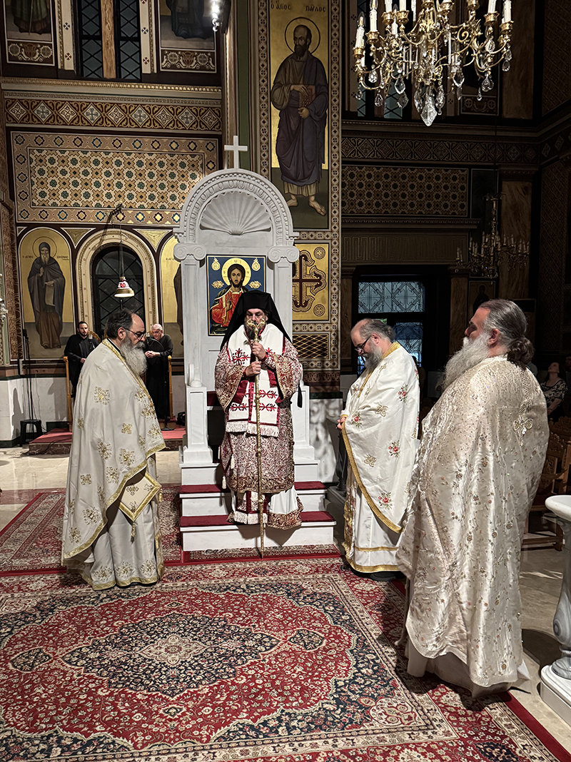 Στη συνέχεια ακολούθησε ιερά Αγρυπνία ιερουργούντος του Σεβασμιωτάτου Μητροπολίτου Σιγκαπούρης και Νοτίου Ασίας κ. Κωνσταντίνου, κατά την διάρκεια της οποίας εψάλησαν οι Χαιρετισμοί του Αγίου.