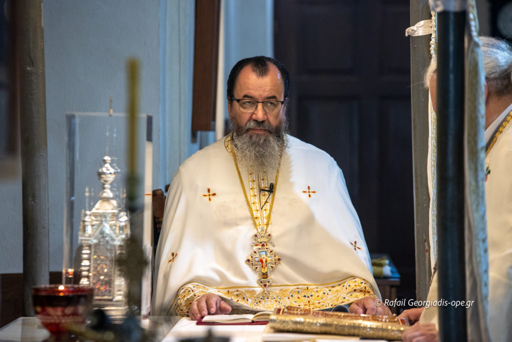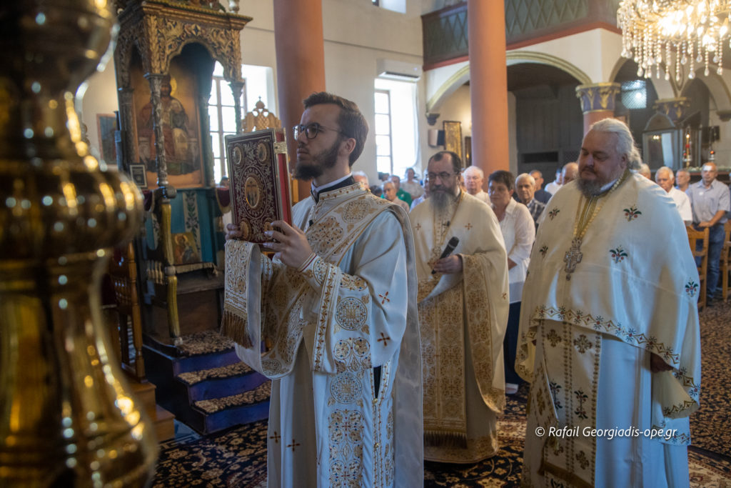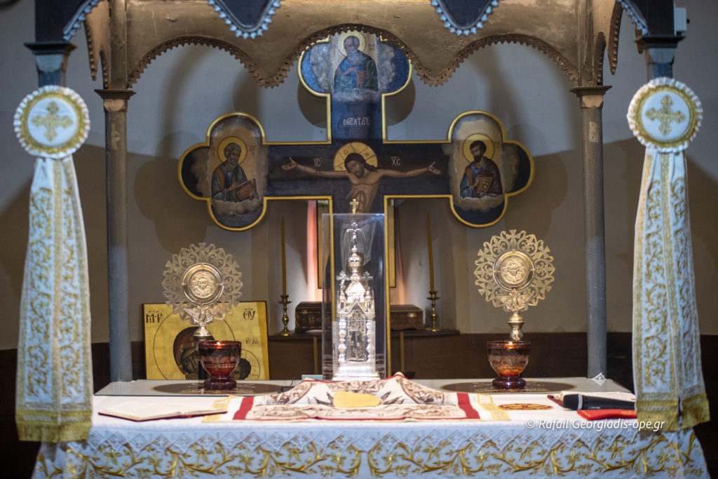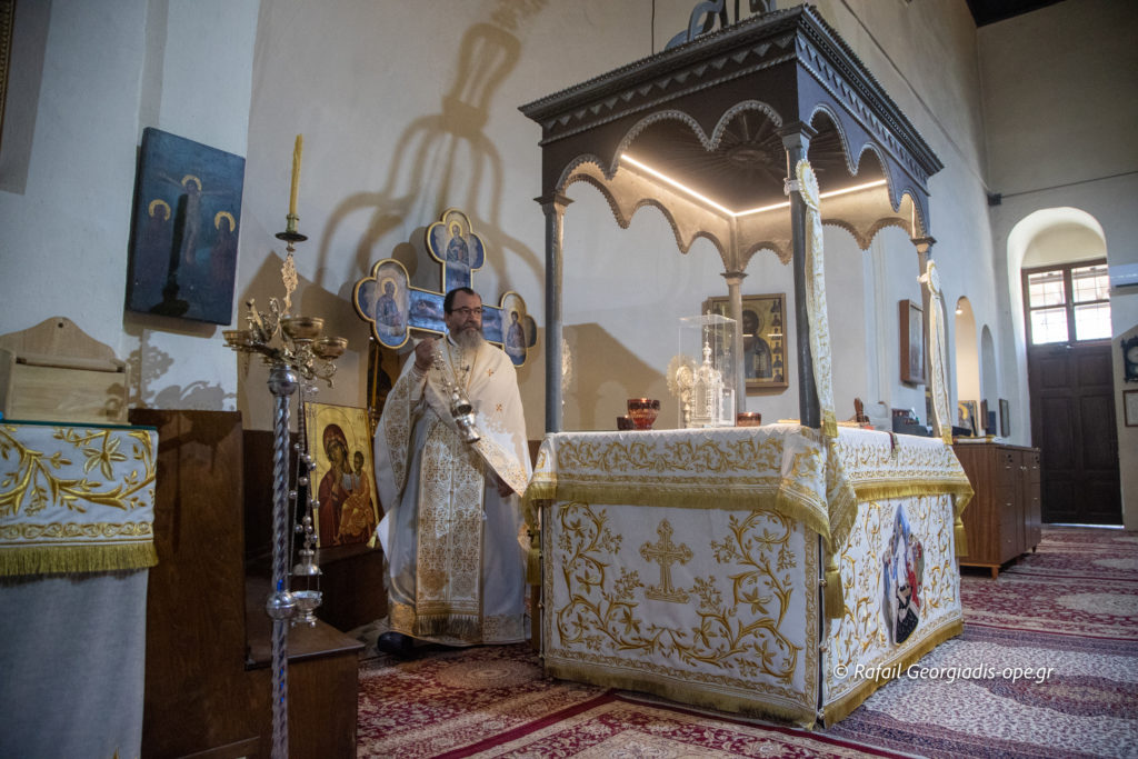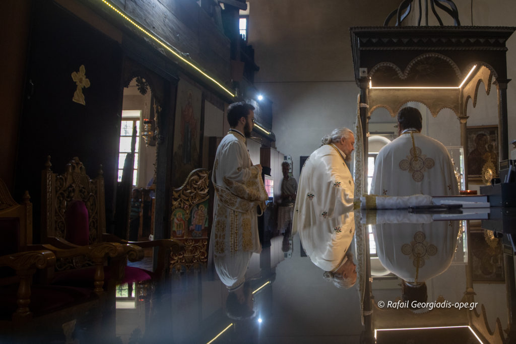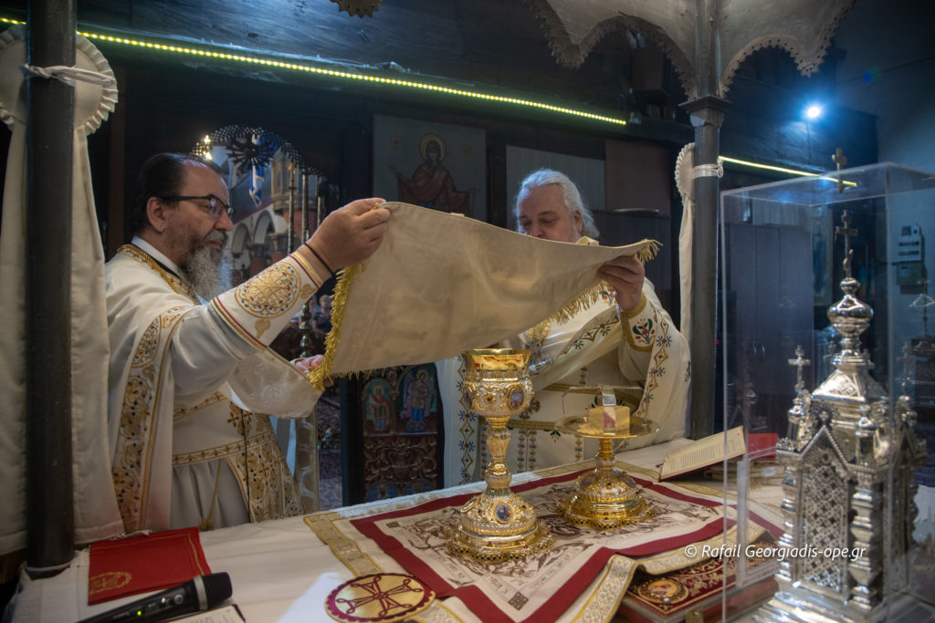 Το μυστήριο της Θείας Ευχαριστίας τέλεσε ο Γενικός Αρχιερετικός Επίτροπος της Ι.Μ. Κασσανδρείας αρχιμ. Ειρηναίος Μιχαηλίδης, πλαισιούμενος από τον προϊστάμενο του ιστορικού ναού πρωτ. Νικόλαο Παντέα και τον διάκονο Ανδρέα Παντέα.