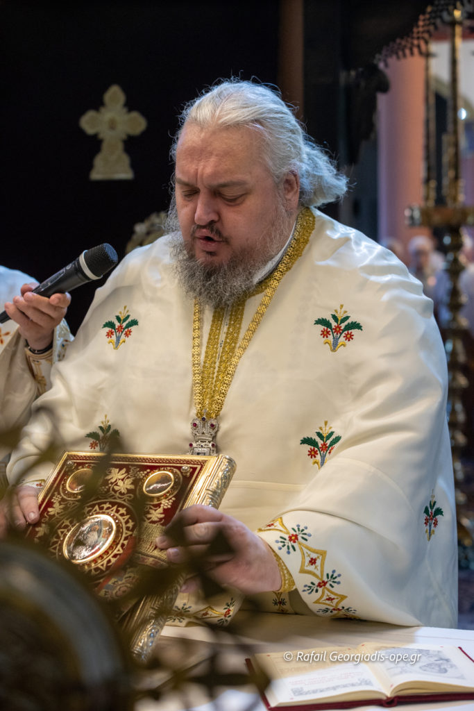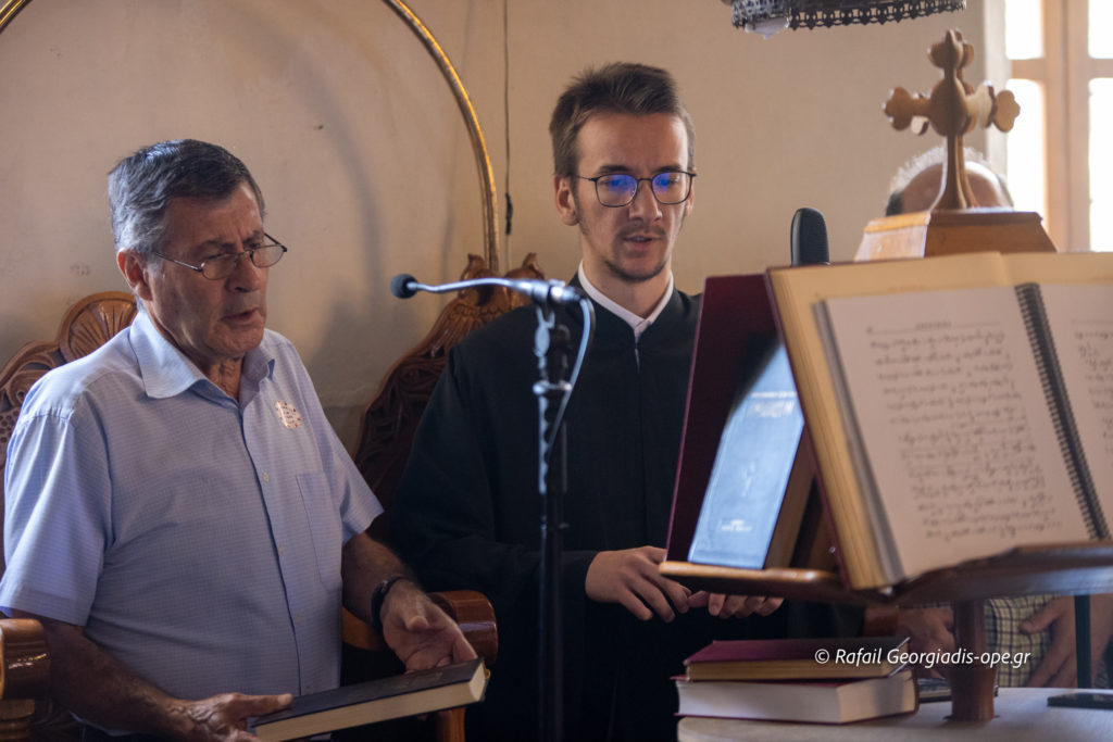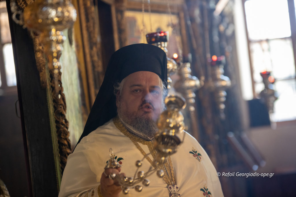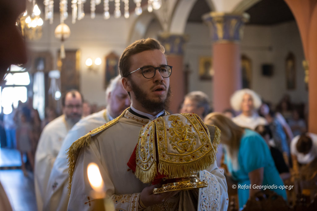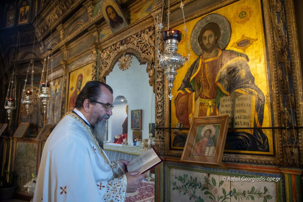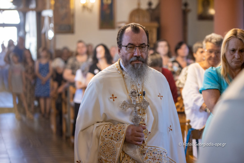 Το μυστήριο της Θείας Ευχαριστίας τέλεσε ο Γενικός Αρχιερετικός Επίτροπος της Ι.Μ. Κασσανδρείας αρχιμ. Ειρηναίος Μιχαηλίδης, πλαισιούμενος από τον προϊστάμενο του ιστορικού ναού πρωτ. Νικόλαο Παντέα και τον διάκονο Ανδρέα Παντέα.