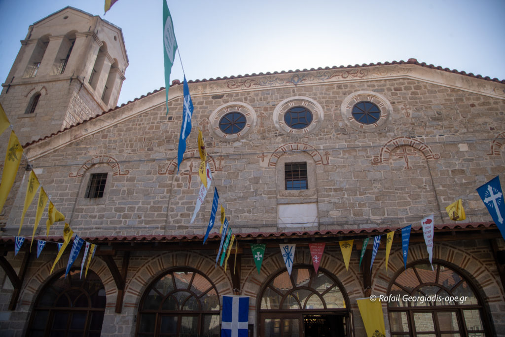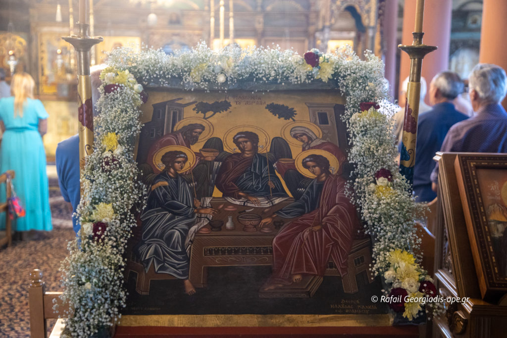Η εορτή του Αγίου Πνεύματος στον πανηγυρίζοντα Ιερό Ναό της Αγίας Τριάδος στη Συκιά Σιθωνίας αντίκρυ από τον Άθωνα