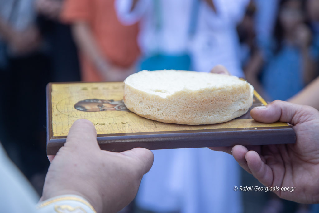 Πριν την απόλυση ο Γενικός Αρχιερατικός π.Ειρηναίος μετέφερε τις πατρικές ευχές του Σεβασμιωτάτου Μητροπολίτου Κασσανδρείας κ.Νικοδήμου και ο προϊστάμενος του ιερού ναού π. Νικόλαος ευλόγησε και έπειτα διανεμήθηκε το φαγητό (κουρμπάνι) σε όλους τους πιστούς.
