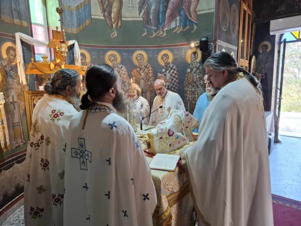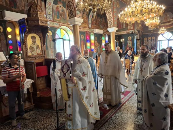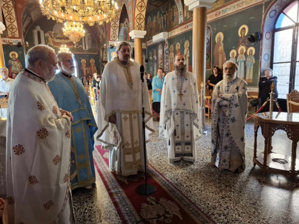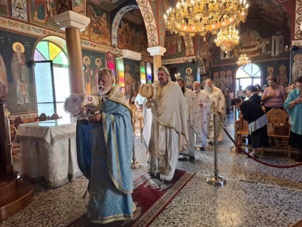 Την Πανηγυρική Θεία Λειτουργία τέλεσαν ο εορτάζων εφημέριος του ιερού ναού Πανοσ. Αρχιμανδρίτης Ρωμανός Μπασινάς με την συμμετοχή των Πανοσ. Αρχιμ. Θεαγένη Κόλλια, εφημέριο ιερού ναού Παναγίας Ελεούσης Μαλακώντα – Ερέτριας, π. Χριστοφόρο Παπαθανασίου εκ της Ιεράς Μονής Αγίου Γεωργίου Αρμά Φύλλων Χαλκίδος, οι Πρωτοπρ. π. Βασίλειος Πασσάς εκ της Ιεράς Μητροπόλεως Κηφισίας Αμαρουσίου Ωρωπού και Μαραθώνος, π. Κυριακός Κοκκάλας εφημέριος ιερού ναού Αγίου Ιωάννου Αμαρύνθου, και ο Σακελλάριος π. Κωνσταντίνος Κιούσης εφημέριος ιερού ναού Αγίας Παρασκευής Καλιθέας.