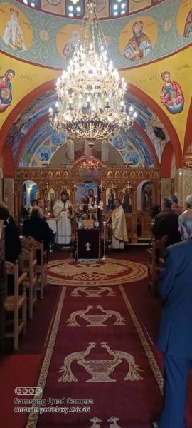 Την επομένη ημέρα στον προαναφερθέντα ιερό ναό τελέσθηκε η Πανηγυρική Θεία Λειτουργία όπου ιερούργησαν οι Πρωτοπρ Γεώργιος Γιαννούλης εφημέριος Αγίου Λουκά Αλιβερίου Αντώνιος Γκίκας εφημέριος Δύστου ο Οικονόμος Αριστείδης Ρούσσος εφημέριος Διρρευμάτων οι Πρεσβύτεροι Σταμάτιος Νονας εφημέριος Κοσκίνων Παναγιώτης Καρακίτσος εφημέριος του ιερού ναού και ο