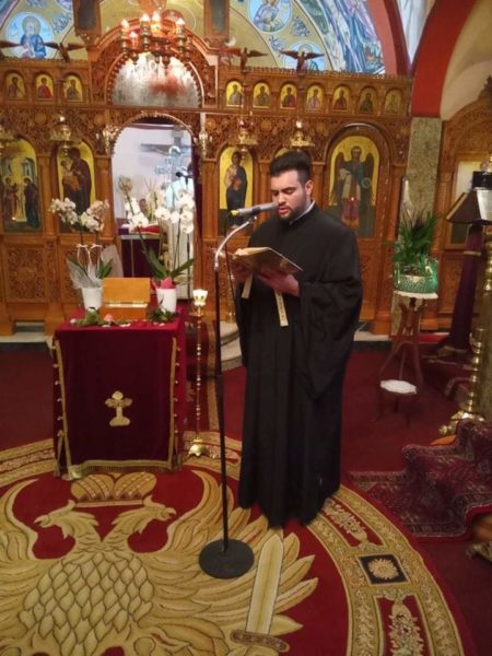 Καθώς επίσης στο αναλόγιο έψαλε Ιεροψάλτης του ιερού ναού και Αναγνώστης κ. Αναστάσιος Ρέτσας ο οποίος είχε την επιμέλεια της όλης λατρευτικής συνάξεως σε συνεργασία με το εκκλησιαστικό συμβούλιο του ιερού ναού.