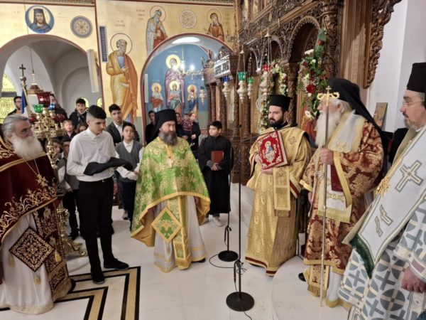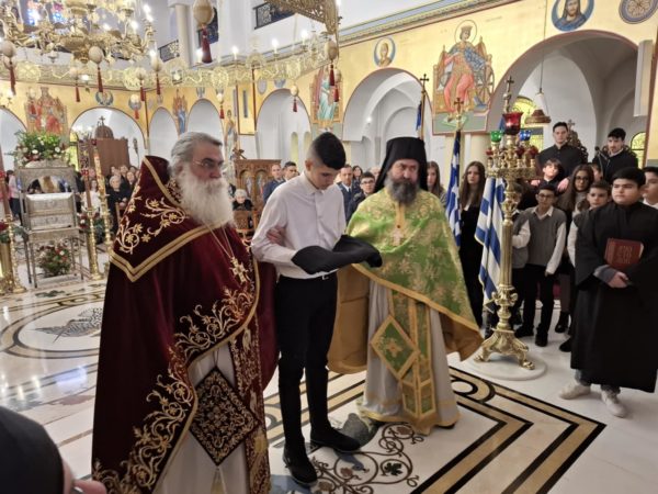 Τέλος ο Σεβασμιώτατος κ. Γεώργιος απήθυνε τις πατρικές και εόρτιες ευχές του προς όλους τους πιστούς ιδιατέρως ευχαρίστησε και συνεχάρει τους παρισταμένους μαθητές τις μαθήτριες και τους διδασκάλους των σχολικών μονάδων για συμμετοχή τους στην θεία λειτουργία απευθύνοντας τους λόγους πατρικούς και ευχές για την πρόοδο και σταδιοδρομία τους.