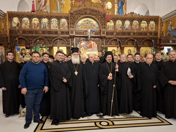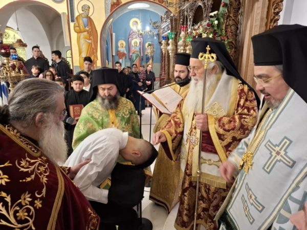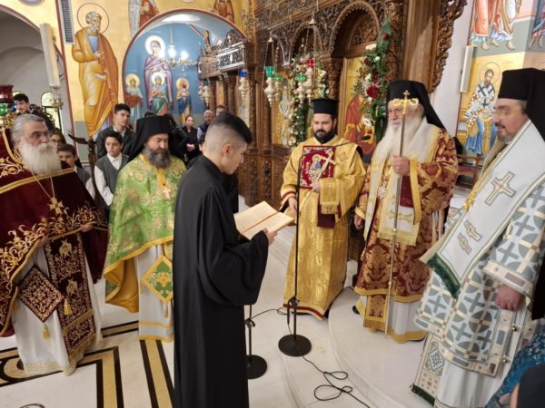 Μετά το πέρας της λειτουργικής συνάξεως κατόπιν παρακλήσεως του εφημερίου του ιερού ναού π. Αθανασίου Γεραμάνη ο Σεβασμιώτατος κ. Γεώργιος με τον Θεοφιλέστατο Επίσκοπο κ. Διονύσιο χειροθέτησαν Αναγνώστη τον εξ Ερετρίας νεαρό και αριστούχο μαθητή Γ’ Λυκείου Βασιλικού Χαλκίδος Παντελεήμονα Μπάκα ο οποιος διακονεί με ένθερμο ζήλο το αναλόγιο του ιερού ναού.
