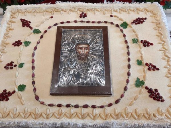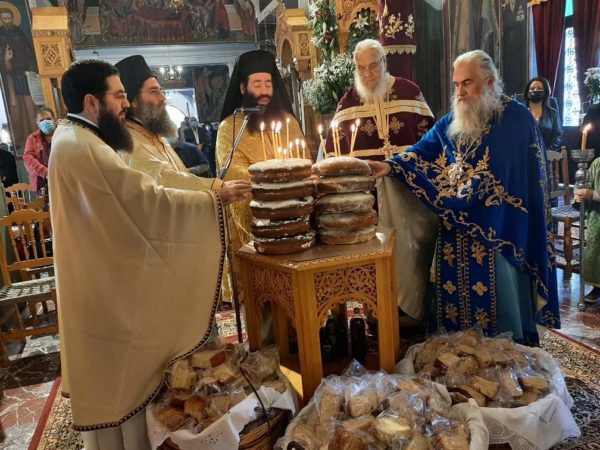 Πριν την απόλυση ο π. Νεκτάριος ευλόγησε το κόλυβο του Αγίου και ευχήθηκε στους εορτάζοντες που τίμησαν την εορτή.