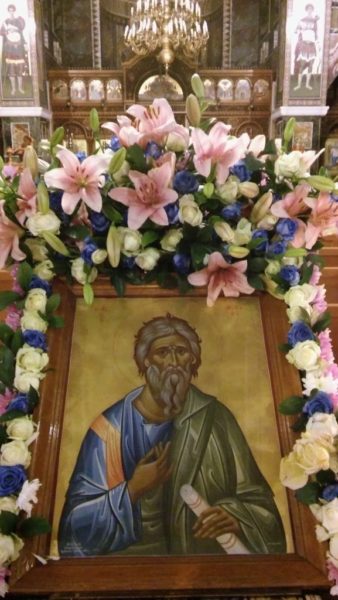 ΤΕΤΑΡΤΗ 30 ΝΟΕΜΒΡΙΟΥ : 7:00 π.μ. Όρθρος και 8:30 π.μ. Πανηγυρική Αρχιερατική Θεία Λειτουργία – 4:30 μ.μ. Μεθέορτος Εσπερινός, 5:00 μ.μ. Λιτάνευση Ιεράς Εικόνος Αγίου Ανδρέου και 6:00 μ.μ. Παράκληση του Αγίου.