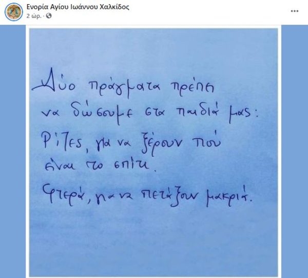 Απο την διδακτική ανάρτηση της Ενορίας Αγίου Ιωάννου Χαλκίδος της Δευτέρας 14 Ιουνίου, από όπου αλιεύουμε τη φωτογραφία της σημερινής ημέρας.