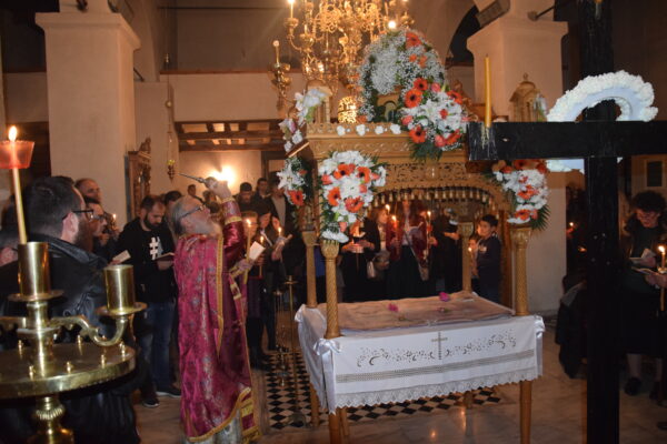 Χθες το απόγευμα τελέστηκε η ακολουθία του Επιταφίου Θρήνου (Όρθρος Μεγάλου Σαββάτου) και στις δυο ενορίες της Υπάτης του Αγίου Νικολάου και του Αγίου Γεωργίου. Στον Ιερό Ναό του Αγίου Νικολάου, που υπήρξε η καθέδρα της πάλαι ποτέ διαλαμψάσης Μητροπόλεως Νέων Πατρών, τα Εγκώμια έψαλλαν οι πιστοί μαζί με τον εφημέριο του ναού π. Δημήτριο Καραγιάννη. Η γλυκύτητα των ύμνων προσέδωσε στην όλη ατμόσφαιρα της πένθιμης νύχτας τα χρώματα της ορθοδόξου χαρμολύπης και την ελπίδα του “δείξον ημίν και την ένδοξόν σου Ανάσταση”.