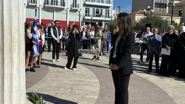 Ακολούθησε Επιμνημόσυνη Δέηση και κατάθεση στεφάνων στο Ηρώο Πεσόντων της πλατείας Αγίου Πέτρου και η παρέλαση μαθητών, μαθητριών, προσκόπων και συλλόγων, με την συμμετοχή της Φιλαρμονικής δήμου Άργους Μυκηνών.