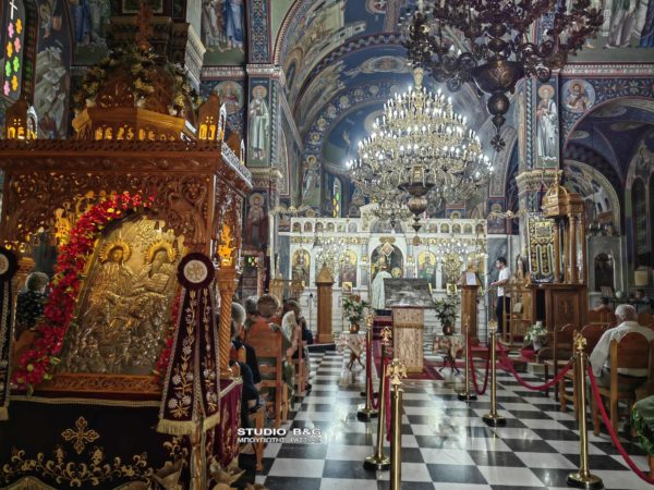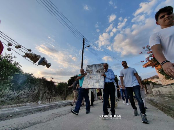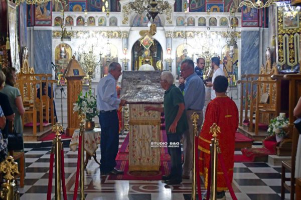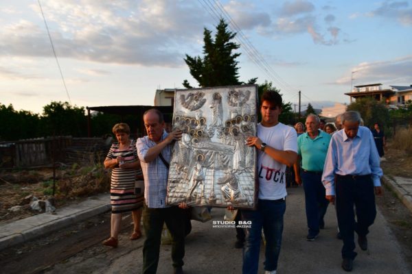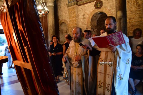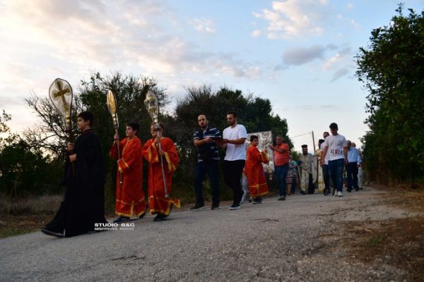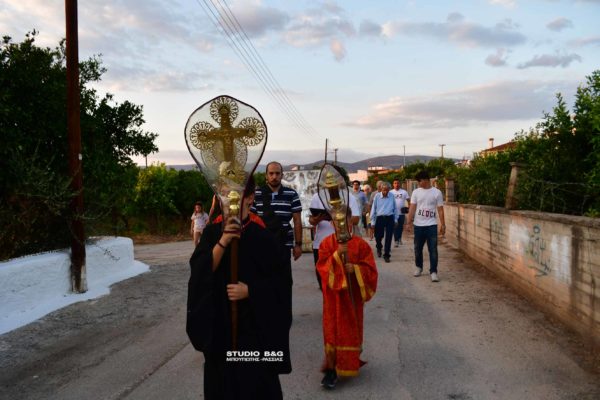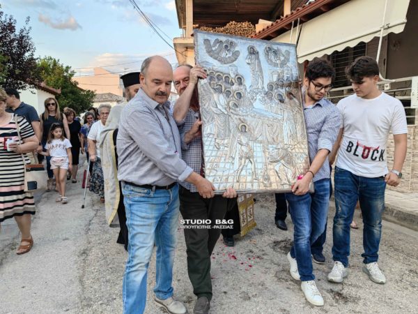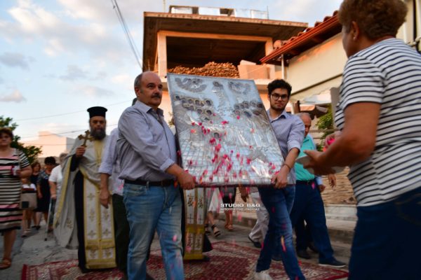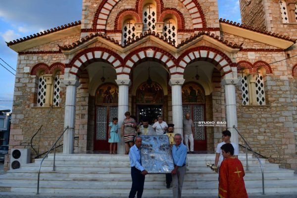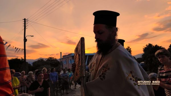 Τον Εσπερινό και την Παράκληση στην Παναγία τέλεσαν οι Ιερείς π. Ιωάννης και π. Γεώργιος Μητροσύλης. Η εικόνα θα παραμένει στον βυζαντινό Ναό μέχρι και την κυριώνυμη ημέρα οπότε μετά τη θεία λειτουργία επιστρέφει και πάλι στη νέα Εκκλησία του χωριού.