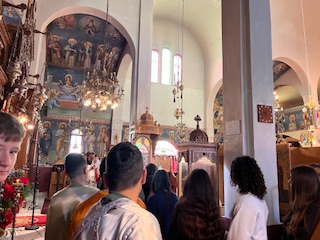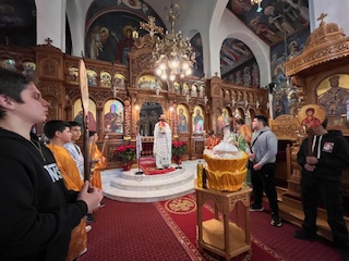 Κατά τη διανομή του αντιδώρου, ομάδα κατηχητόπαιδων του Ιερού Ναού έψαλε το «Αγνή Παρθένε Δέσποινα», συγκινώντας βαθιά μαθητές, εκπαιδευτικούς και τους ηλικιωμένους ενορίτες, οι οποίοι αναπόλησαν με συγκίνηση τα δικά τους παιδικά χρόνια, όταν η Εκκλησία κατείχε κεντρική θέση στη λειτουργική και πνευματική ζωή της καθημερινότητάς τους.