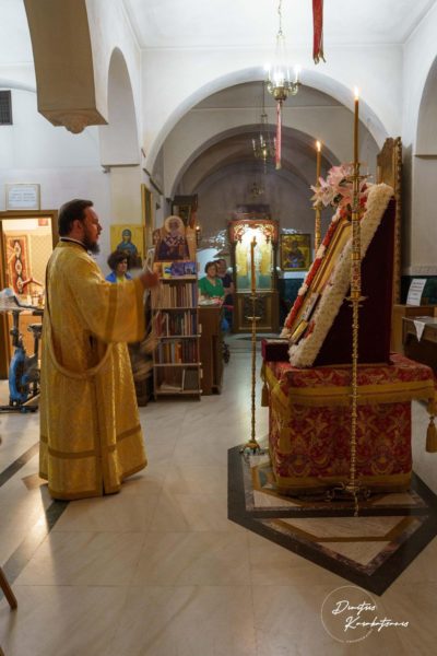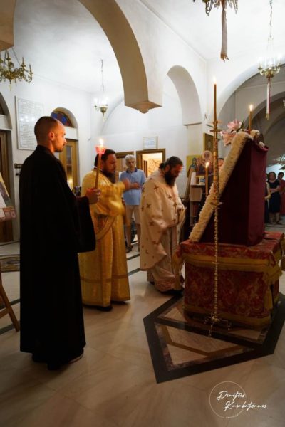 Το βράδυ παραμονή της εορτής, ο προϊστάμενος του ιερού ναού αρχιμ. Μακάριος Τσιμέρης, τέλεσε την καθιερωμένη αγρυπνία στη μνήμη του Αγίου όπου έψαλαν και τα εγκώμια του Αγίου.