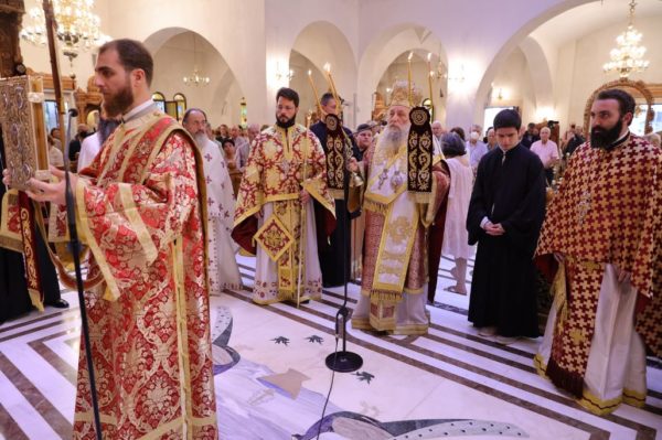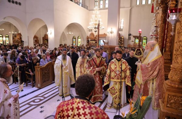 Της ευχαριστιακής συνάξεως προέστη ο Σεβασμιώτατος Μητροπολίτης Παροναξίας κ. Καλλίνικος, ο οποίος κήρυξε και τον θείο λόγο, πλαισιωμένος από τον Πανοσιολογιώτατο Αρχιμανδρίτη π. Δωρόθεο Βενετσανόπουλο, Πρωτοσύγκελλο της Ιεράς Μητροπόλεως Παροναξίας, τον Πανοσιολογιώτατο Αρχιμανδρίτη π. Νεκτάριο Δαρδανό, Πρωτοσύγκελλο της Ιεράς Μητροπόλεως Ύδρας Σπετσών και Αιγίνης, από τους Εφημερίους του Ιερού Ναού και τον Ιεροδιάκονο της Ιεράς Αρχιεπισκοπής Αθηνών π. Ιωάννη.