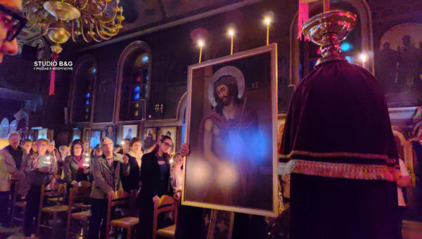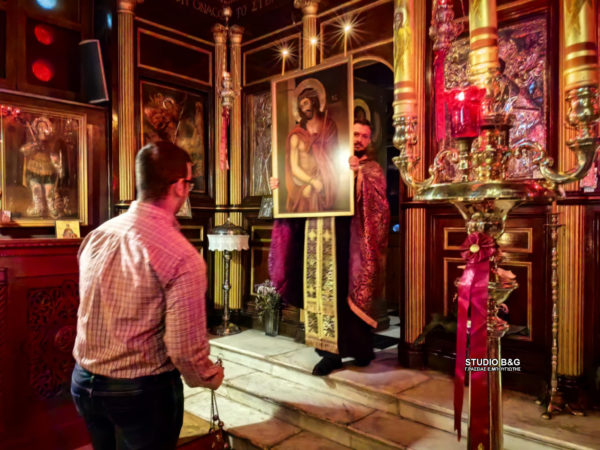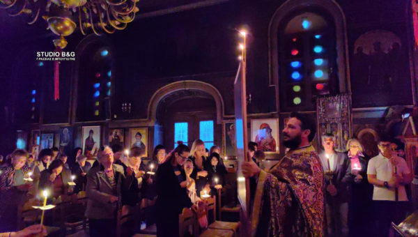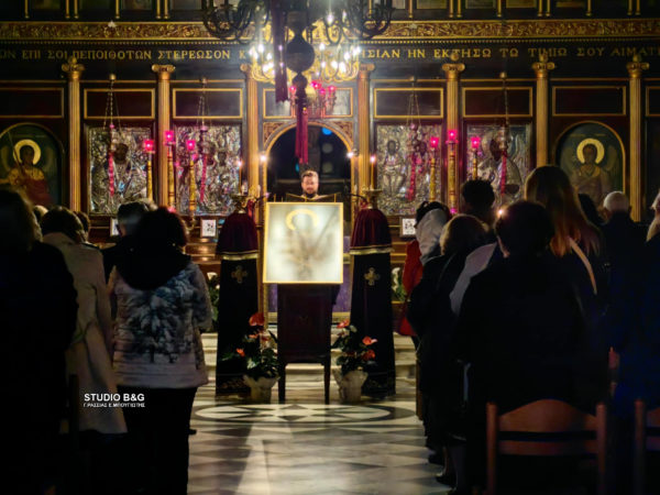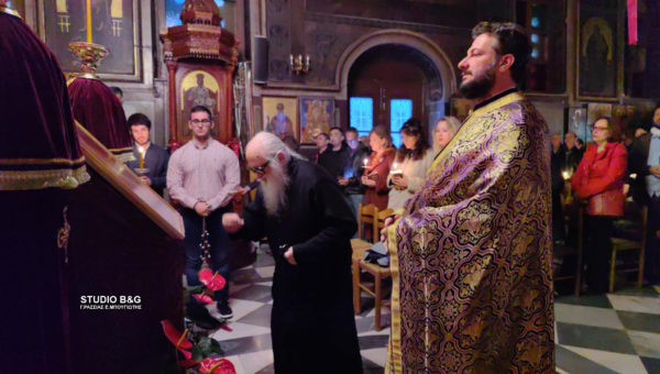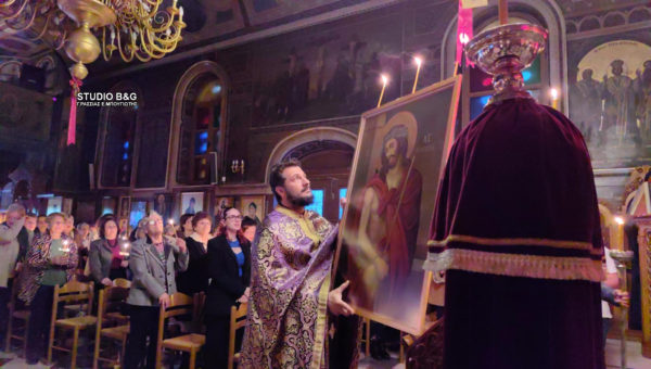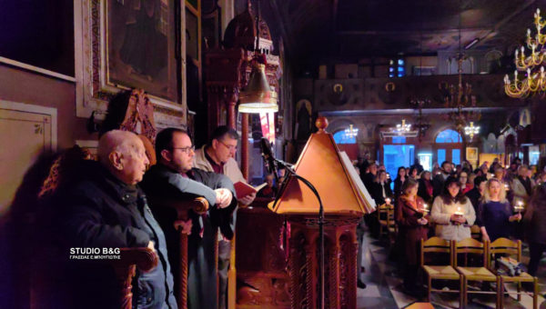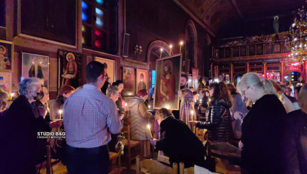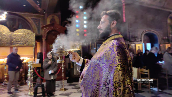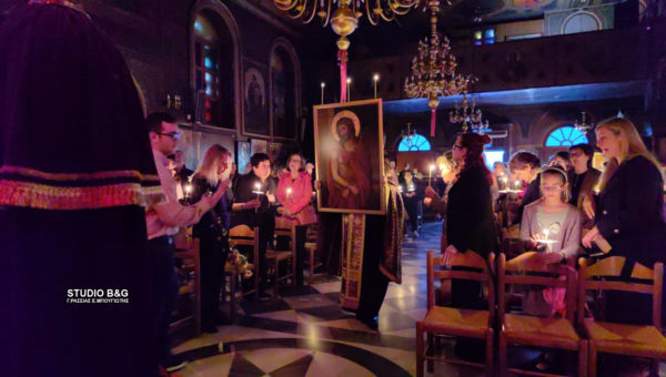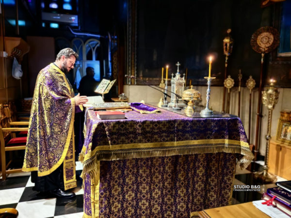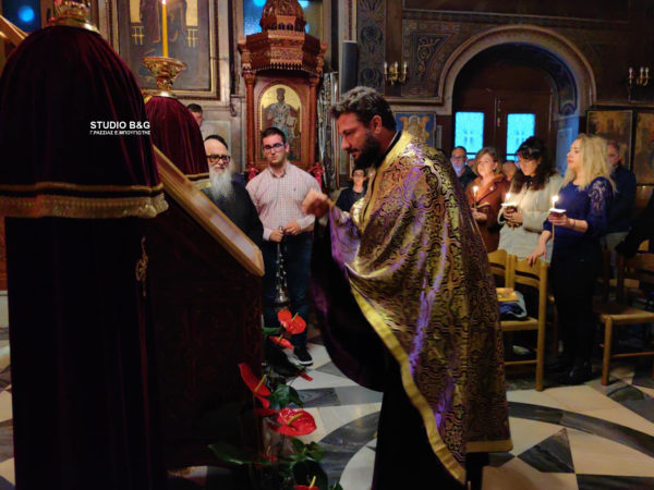 Σε κλίμα κατάνυξης τελέστηκε η ακολουθία του Νυμφίου στον ενοριακό ναό της Αγίας Τριάδος στην Πρόνοια Ναυπλίου, Κυριακή 13 Απριλίου. Κρατώντας την εικόνα του Νυμφίου Χριστού ο Ιερέας του ναού της Αγίας Τριάδος π. Κωνσταντίνος Σέρρος την περιέφερε στον ναό υπό το φως των κεριών.