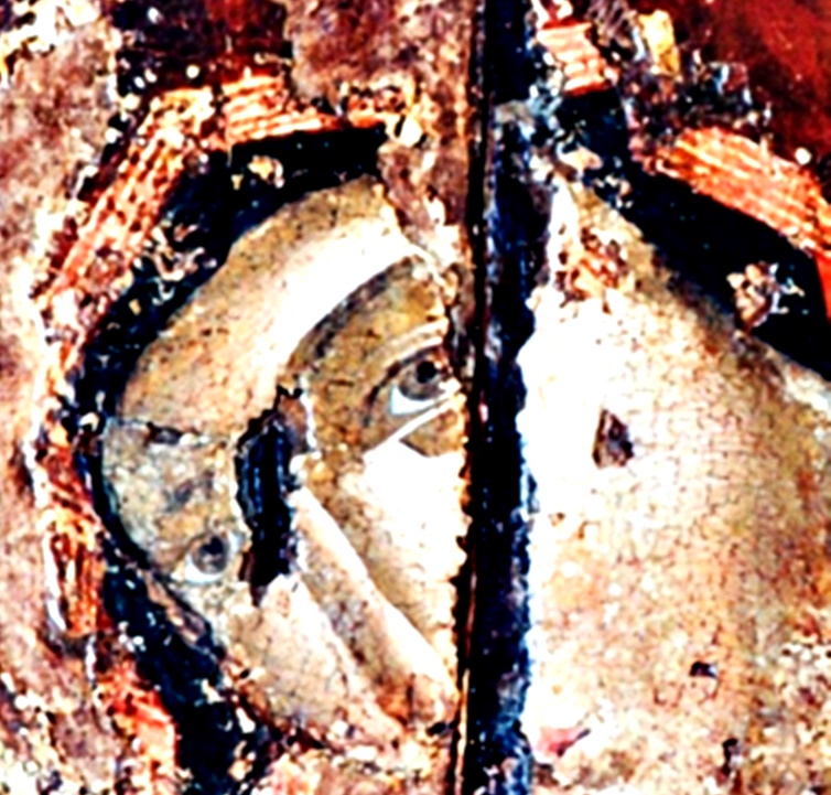 Ο Χριστός φοράει κόκκινο μαφόριο με χρυσό σιρίτι στην παρυφή, βαθυκύαναο χιτώνα και κεκρύφαλο. Ο Χριστός φοράει κόκκινο χιτώνα και πορτοκαλί ιμάτιο με πυκνές χρυσές ανταύγειες.