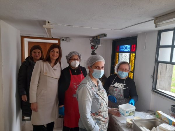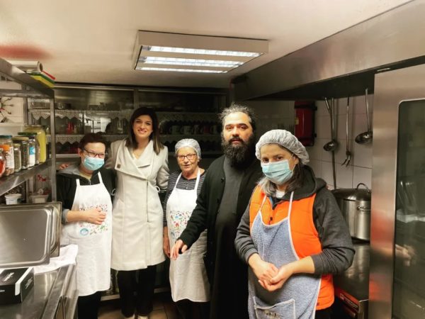 Στη σύντομη συνομιλία που είχε με τον προϊστάμενο του ναού Αρχιμανδρίτη π. Μακάριο Τσιμέρη και τις μαγείρισσες, αντάλλαξαν απόψεις και έδειξε το ενδιαφέρον της για το σπουδαίο φιλανθρωπικό έργο που επιτελείται στην ενορία.