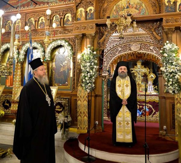 «Θεοφιλέστατε, σεβαστοί μου πατέρες, αγαπητοί αδελφοί, με την άδεια της Αγίας και Ιεράς ημών Συνόδου της Εκκλησίας μας και με την ευλογία του Μακαριωτάτου Αρχιεπισκόπου αυτής κ. Ιερωνύμου, προσκομίζου με το ιερό λείψανο του Μεγάλου Βασιλείου, έτσι ώστε να έρθη και εκείνος συνεορταστής με τον άλλο μεγάλο Άγιο, τον Άγιο Ιερομάρτυρα Ελευθέριο. Επιτρέψατέ μου να ευχαριστήσω τον π. Θεμιστοκλή για όλον αυτόν τον άοκνο πνευματικό του αγώνα, μέσα από τον οποίο αγωνίζεται να μεταφέρη την Χάρη του Θεού σε όλους εσάς. Πραγματικά, όλο αυτό το χρονικό διάστημα μέσα από τις πολύ σπουδαίες ομιλίες και τους εξέχοντες ομιλητές που προσκαλεί όλοι ωφελούμαστε. Έχουμε την ευλογημένη δυνατότητα να αναπνέουμε πνεματικά και να νιώθουμε ότι κι εμείς συμμετέχουμε, έστω και εκ του μακρόθεν, σ’ αυτήν την πολύ όμορφη προσπάθεια, η οποία τελείται σε αυτόν τον ευλογημένο Ναό. Ανάμεσα στα χαρακτηριστικά που αποδίδει η Αγία μας Εκκλησία στον Άγιο Ελευθέριο, είναι και εκείνο του σοφού, όχι με την κοσμική αλλά με την πνευματική έννοια. Γιατί είχε τέτοια σύνδεση με τον Χριστό, ώστε ούτερ τα βασανιστήρια να τον αγγίζουν ούτε ο φόβος του θανάτου, και παρ’ όλα τα νιάτα του να προσφέρη τον εαυτό του θυσία στον ουράνιο αγαπημένο του. Γιατί, όταν τον υπέβαλαν στα φρικτότατα βασανιστήρια, ο νούς του ήταν ενωμένος με τον ουράνιο Νυμφίο του. Και η γλυκύτητα αύτής της ενώσεως δεν μπορούσε παρά να θέση στην άκρη τον φόβο, τον κόπο, τον πόνο που του προκαλούσαν όλα αυτά τα βασανιστήρια, που προέρχονταν από την κακία των ανθρώπων. Αυτήν την σοφία αυτού του Αγίου, την οποία εμείς αγωνιζόμαστε να αποκτήσουμε, έρχεται ο άλλος μεγάλος Άγιος, ο Μέγας Βασίλειος με την συγγραφή του να μας βοηθήση να την συστηματοποιήσουμε και να μας πη ότι η σοφία του ανθρώπου του Θεού έγκειται στο να μπορή εκείνος τον νού του να τον έχη διαρκώς στραμμένο προς τον Θεό και το βλέμμα του νού του, που είναι τα μάτια της ψυχής, ο ηγεμόνας της ψυχής, να είναι πάντοτε σε εγρήγορση, για να μπορή ο άνθρωπος να ξεφεύγη από τους πειρασμούς και τις παγίδες του. Και όταν είναι σε διαρκή εγρήγορση ο νούς του ανθρώπου, λέγει ο Μέγας Βασίλειος, δεν ασχολείται με τα των άλλων αλλά μόνο με τα του εαυτού του. Γιατί ξέρει ότι αυτός και μόνο του ανήκει και αυτόν και μόνο τον ορίζει και μ’αυτόν τον τρόπο έχει την δυνατότητα να είναι ισορροπημένος, άσχετα με το τι συμβαίνει στην ζωή του. Και τα καλά και τα άσχημα ο ισορροπημένος άνθρωπος έχει την δυνατότητα να τα αντιμετωπίζει με την Χάρη του Θεού. Έχε στραμμένο τον νού σου στον Θεό, γιατί Εκείνος είναι η πραγματική δόξα και ο πραγματικός πλούτος. Κι αν ακόμα συμβαίνουν άσχημα, κι αν ακόμα είσαι φτωχός, κι αν δεν έχης όσα θα ήθελες να έχης, πάλι δόξασε τον Θεό για τον αέρα που σου προσφέρει, γιατί είσαι ζωντανός, γιατί σε έπλασε κατ’ εικόνα και καθ’ ομοίωσιν Εκείνου. Και τότε θα έχης την δυνατότητα να είσαι ισορροπημένος άνθρωπος δοξάζοντας το όνομά Του για όσα η αγάπη Του επιτρέπει στην ζωή σου.