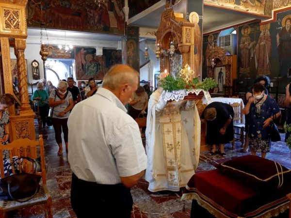 Επίσης συμμετείχαν οι πιστοί ιστάμενοι με τα προβλεπόμενα των υγειονομικών διατάξεων ώστε να λάβουν την χάρη του τιμίου σταυρού.