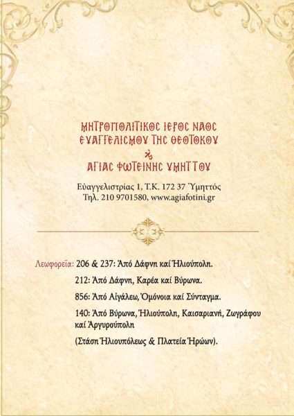 Ιερά Πανήγυρη Ιερού Ναού Αγίας Φωτεινής Υμηττού
