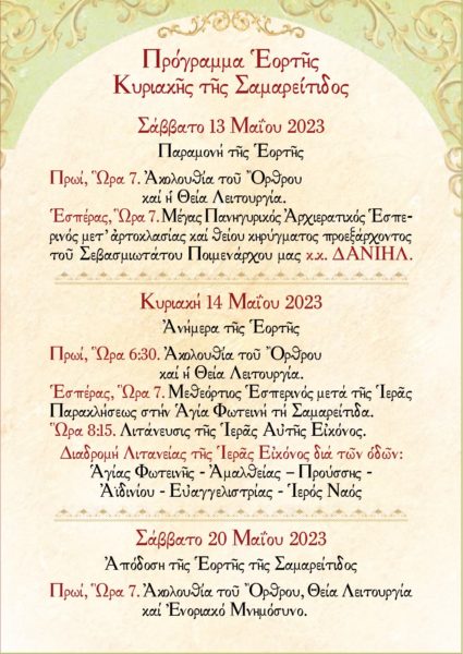Σάββατο 20 Μαίου 2023 – Απόδοση της Εορτής της Σαμαρείτιδος