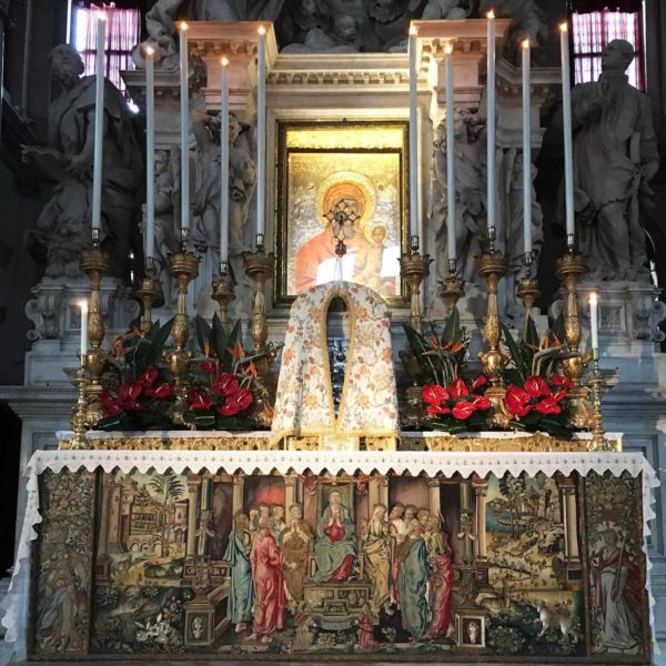 Η σύνδεση του Αγίου Τίτου με την εικόνα της Παναγίας της Μεσοπαντίτισσας φαίνεται από το λάβαρο του Francesco Morossini με τις παραστάσεις που εικονίζονται πάνω του και που σήμερα φυλάσσεται στο Μουσείο Correr της Βενετίας.