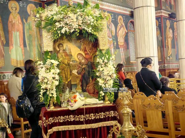 Με Εκκλησιαστική λαμπρότητα και θρησκευτική κατάνυξη στο Ναύπλιο, τιμάται η εορτή του Ευαγγελισμού της Θεοτόκου στον ομώνυμη Ιερό Ναό της Ευαγγελιστρίας Ναυπλίου. Χιλιάδες πιστών κάθε χρόνο από όλη την Αργολίδα αλλά και την Πελοπόννησο, έρχονται για να τιμήσουν την Παναγία εναποθέτοντας τις ελπίδες τους προς Αυτήν.