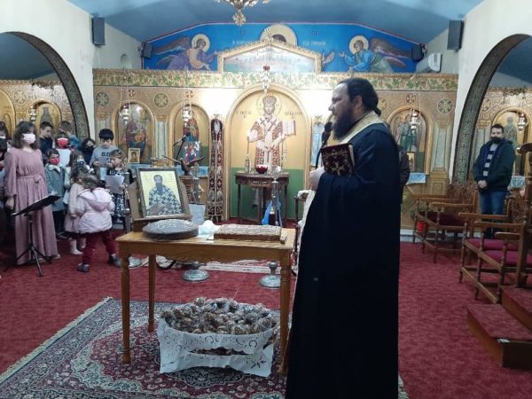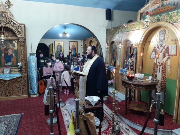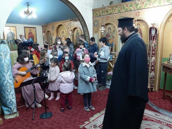 Εν συνεχεία τα παιδιά του κατηχητικού της ενορίας με τις κατηχήτριες τραγούδησαν διάφορα τραγούδια και έψαλαν επίκαιρους βυζαντινούς ύμνους.