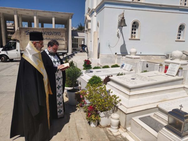Το μεσημέρι της αυτής, ο Πρόεδρος του εκκλησιαστικού συμβουλίου του ναού, Αρχιμανδρίτης Σεραφείμ Δημητρίου, με τον Επίσκοπο Βερενίκης Χρυσόστομο μετέβησαν στο Α΄κοιμητήριο και τέλεσαν τρισάγιο προ του τάφου του μακαριστού πρωθιεράρχου κυρού Σεραφείμ. Προηγουμένως ο π. Σεραφείμ είχε συνοδεύσει τον Επίσκοπο Βερενίκης σε συνάντηση του με τον Πάπα και Πατριάρχη Αλεξανδρείας κ.κ. Θεόδωρο Β’.