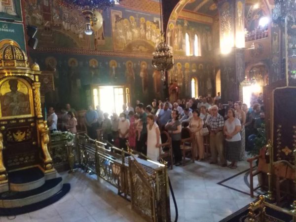 Της πανηγυρικής λειτουργίας, χοροστάτησε ο ιερατικός προϊστάμενος του ναού ευλαβής Αρχιμανδρίτης κ-ος Πλάτωνας Βακαλάκης, συνεπικουρούμενος από τους ευλαβείς ιερείς επίσης του Αγίου Δημητρίου, κ.κ. Κίκιζα Γεώργιο, Κωνσταντέλλο Δημήτριο, Γασπαρά-το Θεολόγο και τον διάκονο Αποστόλου Αστέριο.