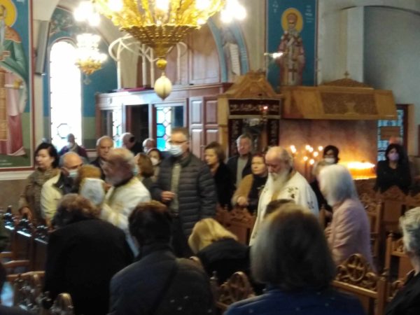 Με το πέρας της δοξολογιακής λειτουργίας, τον λόγο έλαβε ο ευλαβής Πατέρας Λάμπρος και αφού διεμήνυσε το διάστικτο από αγάπη, ευγενές μήνυμα του Αρχιεπισκόπου μας Αθηνών και πάσης Ελλάδος κ.κ. Ιερωνύμου, για την ιερή θεομητορική εορτή της Παναγίας, αναφέρθηκε στην αδήριτη ανάγκη, να αναβαπτιστούμε όλοι στα θεία νάματα της βρυσομάνας πηγής του Ελληνισμού της Ορθοδοξίας και μέσα από την άχραντη διδασκαλία της, να προσανατολιστούμε σε έναν δρόμο ηθικής αρετής και πνευματικής ευημερίας.