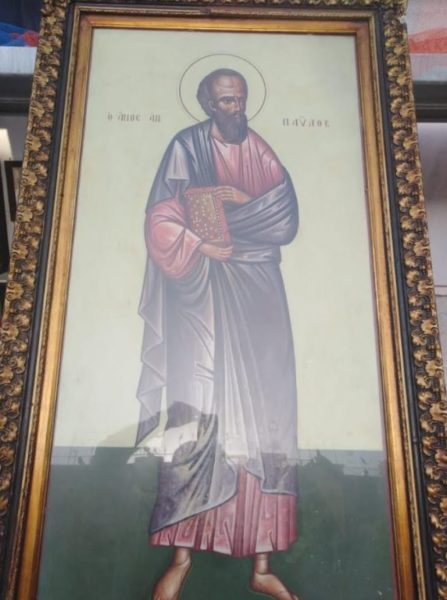 Του οιστρηλατημένου δασκάλου του ευαγγελίου, που από απηνής διώκτης του χριστιανισμού, μετηλλάχθη με την παρέμβαση του Ιησού, σε διαπρύσιο κήρυκα της αγάπης του. «Σαούλ, Σαούλ, τι με διώκεις» ! Με έκδηλη την ηθική φροντίδα και μέριμνα του αρχιερατικού υπευθύνου του ναού, σεπτού πατέρα Αρχιμανδρίτη Φιλόθεου Ορφανουδάκη, των άλλων εφημερίων της εκκλησίας, της ενοριακής επιτροπής, αλλά και των εθελοντών, έλαμπε ο περικαλλής ναός της οδού Ψαρρών, σημαιοστολισμένος μέσα στην βυζαντινή πορφύρα και προσέφερε στο χριστεπώνυμο πλήθος, μοναδική ηθική ανάταση. Και την κατανυκτική ατμόσφαιρα διαδέχονταν η βυζαντινή μεγαλοπρέπεια και το πνευματικό φέγγος και θάμπος του Αποστόλου των Εθνών Παύλου. Του εξαίρετου Ταρσέως, που δίδαξε στην οικουμένη τον λόγο του ιερού ευαγγελίου και μεταλαμπάδευσε με άφατη προσήλωση σε όλο τον κόσμο της εποχής του, την αγάπη του Χριστού, για να παραδώσει την έξοχη χριστιανική καρδιά το στον φονικό Νέρωνα.