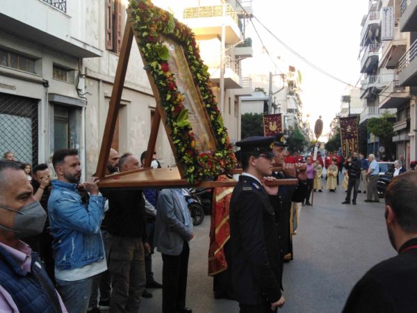 Με το πέρας της λειτουργίας επακολούθησε εκλιτάνευση της ιεράς εικόνας του μάρτυρος Γεωργίου, περιμετρικά των οδών του ναού.