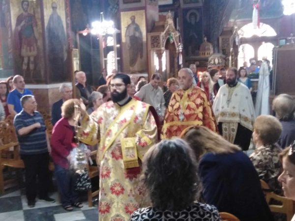 Με την επάνοδο της εικόνας στην εκκλησία, ο ευλαβής Αρχιμανδρίτης κος Χριστόδουλος Κατσαντωνόπουλος, αναφέρθηκε με τους μεστούς λόγους του από καρδιάς, στην ηθική υπεροχή του χριστιανισμού ως πανανθρώπινου δόγματος αγάπης, και κάλεσε τους πιστούς, να σφυρηλατήσουν την πίστη τους στην Ορθοδοξία και να εγκολπωθούν το θυσιαστικό μήνυμα του αδαμάντινου μάρτυρος της Ορθοδοξίας Αγίου Γεωργίου, ενώ διατράνωσε την πεποίθησή του, ότι παρόλες τις προσπάθειες που καταβάλλονται από ποικυλώνυμα κέντρα, για την αποχριστιανοποίηση της ελληνικής κοινωνίας και την αποδόμηση της πολιτισμικής μας ταυτότητας και των οικογενειακών μας παραδόσεων, που είναι εμποτισμένες από τα ιερά νάματα της ορθοδοξίας, τελικώς ο χριστιανισμός και για την ηθική του υπεροχή, θα επικρατεί εσαεί και θα είναι το κεντρικό πολιτισμικό σημείο αναφοράς του ελληνισμού.