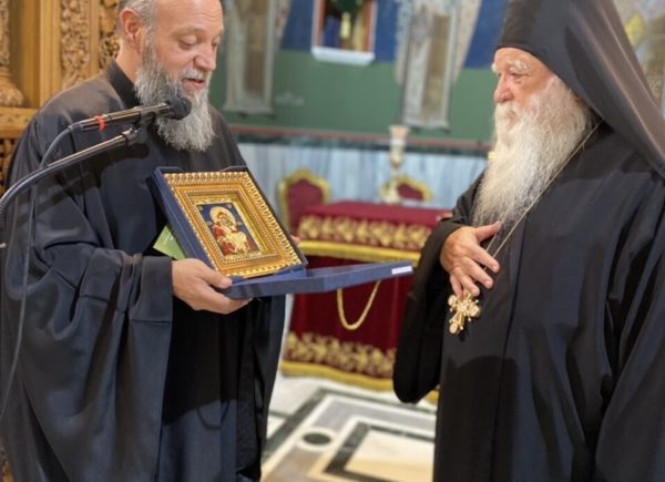 Ο π. Χριστόδουλος προσέφερε στον Καθηγούμενο αντίγραφο της Παναγίας της Παρηγορητρίας εκ μέρους του Εκκλ. Συμβουλίου αλλά και όλης της Ενορίας καθώς και το νέο «Παρακλητικό Κανόνα εις την Παναγίαν την Παρηγορήτριαν την Δακρυρροούσαν και Μυροβλύζουσαν» ποίημα του Σεβ. Μητροπολίτου Εδέσσης κ. Ιωήλ.