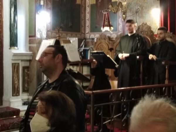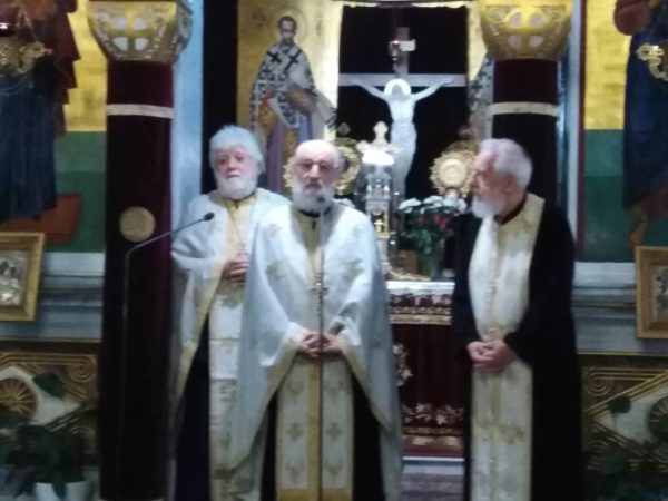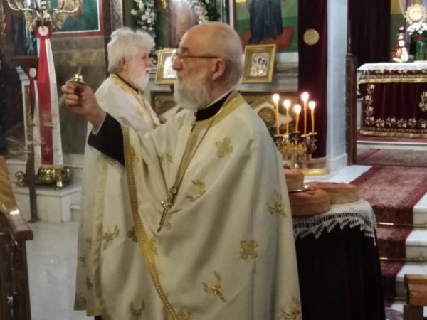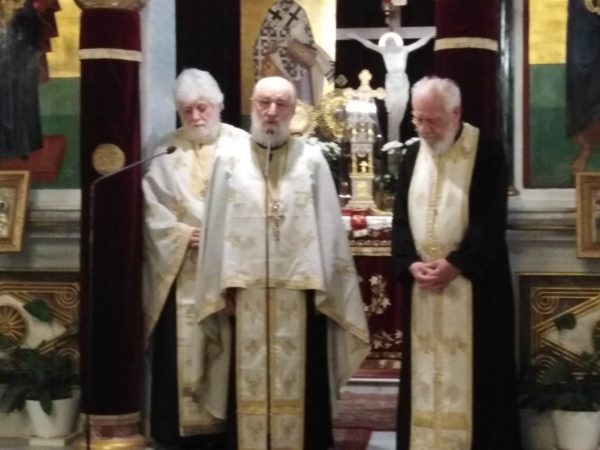 Του πανηγυρικού εσπερινού χοροστάτησαν οι ευλαβείς ιερείς της εκκλησίας του Αγίου Σπυρίδωνος, κ.κ. Τσουρός Κυριακός-προϊσταμένος του ναού, Αργυρόπουλος Χρήστος και Σκόνδρας Δημήτριος, παρευρισκομένων και άλλων ιερέων από παρακείμενες εκκλησίες, που προσήλθαν ευλαβικά, για να τιμήσουν τον κορυφαίο της Ορθοδοξίας μας Άγιο Σπυρίδωνα. Κατάφορτο απο συγκίνηση το χριστεπώνυμο πλήθος, στην ευχαριστιακή λειτουργία και ιδιαίτερα με την ευλογία των αγίων άρτων, αλλά και τον δοξαστικό ύμνο προς την πλατυτέρα των Ουρανών πανάχραντο Παναγία, έψαλε νοερά, το «χαίρε κεχαριτωμένη Μαρία και ευλογημένος ο καρπός της κοιλίας σου».