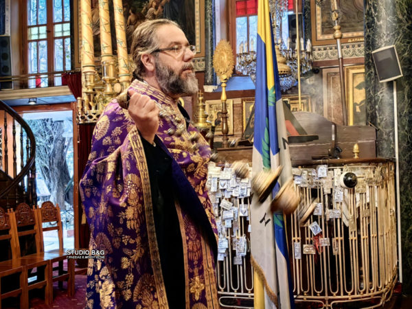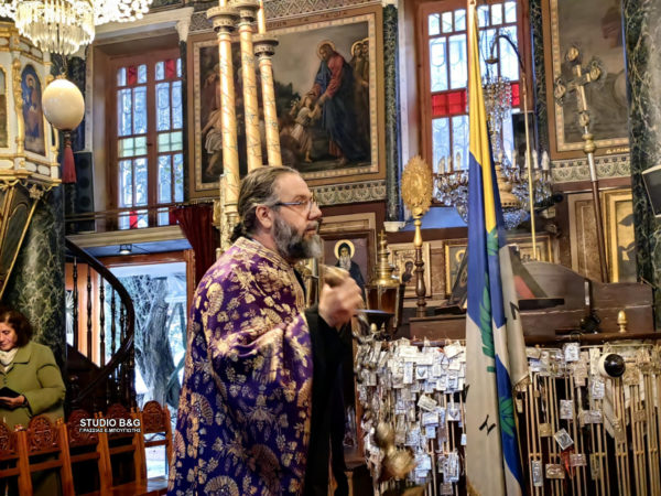Μετά τον κατανυκτικό εσπερινό που τέλεσαν Ιερείς της επαρχίας Ναυπλίου, ακολούθησε το κήρυγμα από τον Παν/το Αρχιμανδρίτη π. Λεόντιο Ξηνταρόπουλο , Ιεροκήρυκα της Μητροπόλεως Αργολίδας. Στο τέλος της ομιλίας ο εφημέριος του ναού π. Διονύσιος Ταμπάκης, ευχαρίστησε τον ιεροκήρυκα για την ομιλία του , καθώς κι όλους τους πιστούς που παρακολούθησαν τον κατανυκτικό εσπερινό.