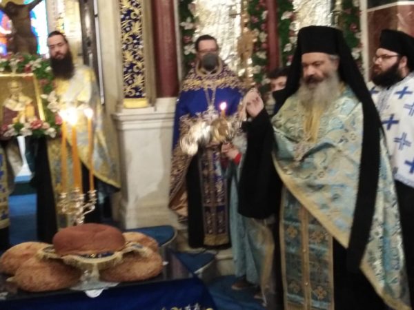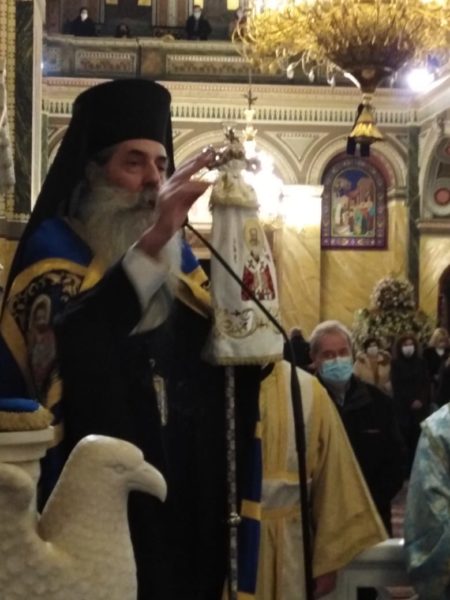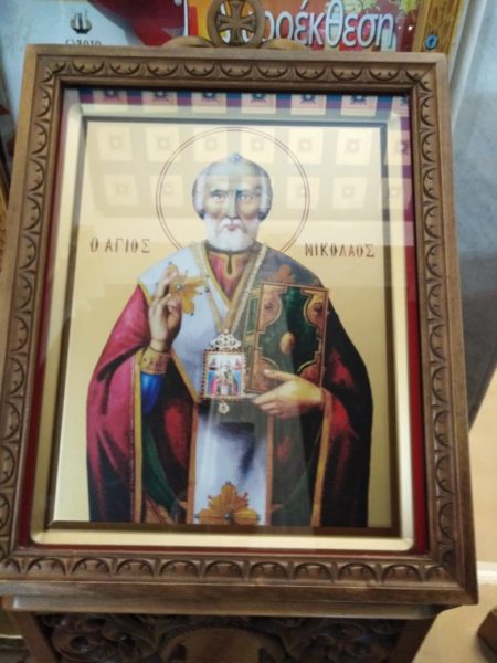 Με το πέρας του πανηγυρικού εσπερινού, τον λόγο έλαβε ο Μητροπολίτης κ.κ. Σεραφείμ και ευχήθηκε στους πιστούς Χρόνια Πολλά και η σεπτή μνήμη του Αγίου Νικολάου, να τους εμπνέει και να τους οδηγεί σε δρόμους χριστιανικής αρετής και ηθικής ευημερίας. Πολλώ μάλλον σήμερα, που η ηθική απίσχναση, ο άκρατος και στείρος δικαιωματισμός, η πνευμα-τική ένδεια και η άπωση από τις αξίες και τις αρετές της ορθοδοξίας, έχουν βυθίσει στο τέλμα την ελληνική κοινωνία. Ενώ ευχαρίστησε τους ευγενείς εθελοντές, τις κυρίες του φιλοπτώχου ταμείου και το ενοριακό συμβούλιο για τις άοκνες προσπάθειές τους, στην άρτια υλοποίηση της πανηγύρεως και ευχήθηκε από καρδιάς σε όλους, ο Άγιος Νικόλαος να τους χαρίζει υγεία πνευματική και σωματική και να λαμπρύνει ηθικά με την χάρη του, την ζωή τους. Χρόνια Πολλά και πανευφρόσυνα και ο Ιερός Νικόλαος να σκέπει και να χαριτώνει ηθικά εσάς και τις ευσεβείς οικογένειές σας. Παραθέτουμε το Απολυτίκιο του Αγίου Νικολάου : Κανόνα πίστεως καὶ εἰκόνα πραότητος, ἐγκρατείας Διδάσκαλον, ἀνέδειξέ σε τῇ ποίμνῃ σου, ἡ τῶν πραγμάτων ἀλήθεια· διὰ τοῦτο ἐκτήσω τῇ ταπεινώσει τὰ ὑψηλά, τῇ πτωχείᾳ τὰ πλούσια. Πάτερ Ἱεράρχα Νικόλαε, πρέσβευε Χριστῷ τῷ Θεῷ, σωθῆναι τὰς ψυχὰς ἡμῶν.