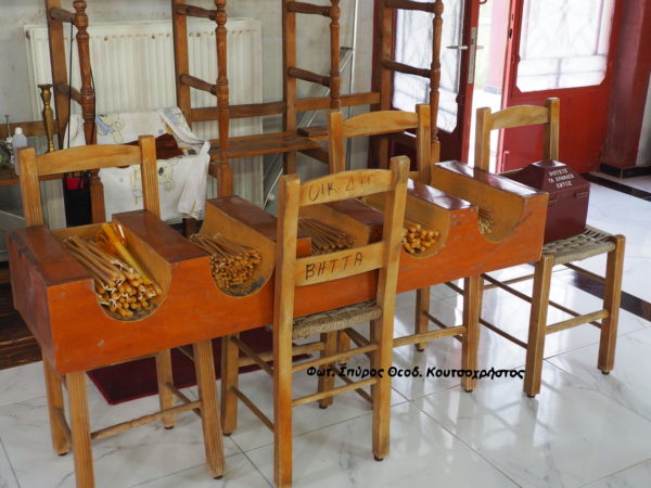 Από τα στασίδια, ξεκόλλησαν οι πλάτες, το αναλόγιο έχει πετσικάρει, οι περισσότερες καρέκλες διαλύθηκαν, τα κεριά τοποθετούνται προσωρινά πάνω σε καρέκλες …