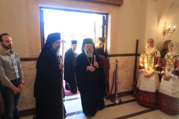 Προ της απολύσεως της ιεράς λιτανεύσεως, όλοι οι πιστοί έψαλαν το κοντάκιο “Τη Υπερμάχω”, προς τιμήν της Υπεραγίας Θεοτόκου και τον Εθνικό μας Ύμνο.