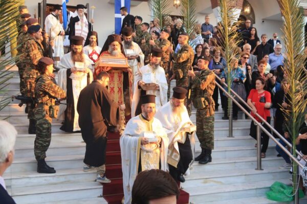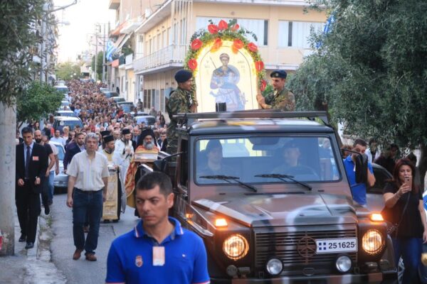 Ακολούθησε η λιτάνευση της ιεράς εικόνος του Μεγαλομάρτυρος Αγίου Δημητρίου του Μυροβλύτου επί στρατιωτικού οχήματος, των χαριτόβρυτων ιερών λειψάνων του, του Αγίου Νεκταρίου, του Αγίου Νέστορος και πολλών άλλων.