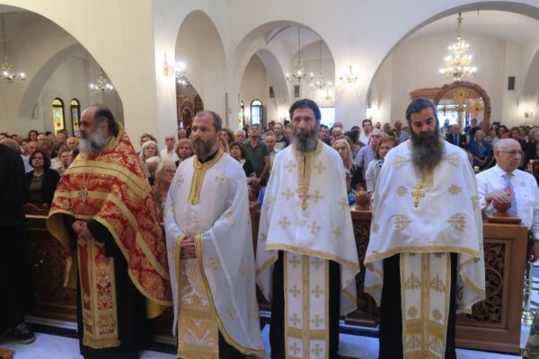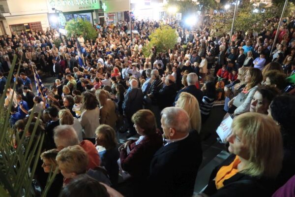Προ της απολύσεως της ιεράς λιτανεύσεως, όλοι οι πιστοί έψαλαν το κοντάκιο “Τη Υπερμάχω”, προς τιμήν της Υπεραγίας Θεοτόκου και τον Εθνικό μας Ύμνο.