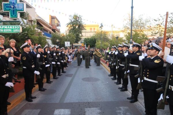 Τιμές απέδωσαν Ένοπλο Άγημα του Στρατού Ξηράς και του Λιμενικού Σώματος ενώ παιάνισαν οι Φιλαρμονικές του Στρατού Ξηράς, Λιμενικού Σώματος και του Δήμου.