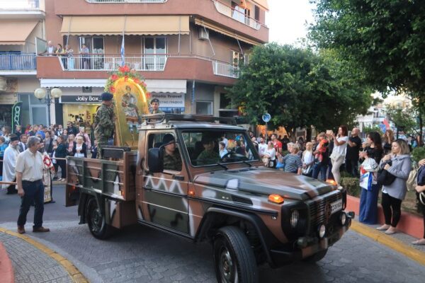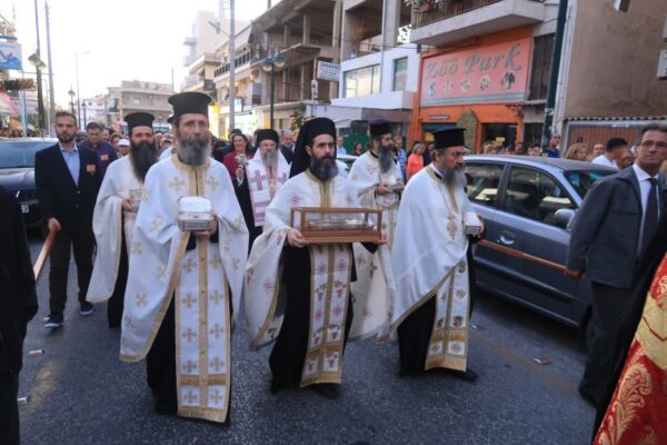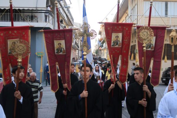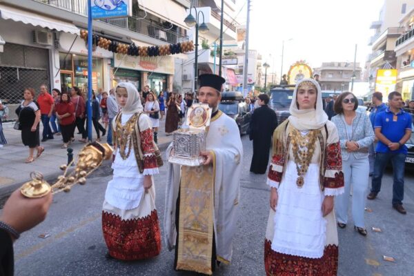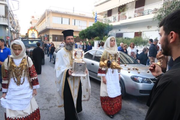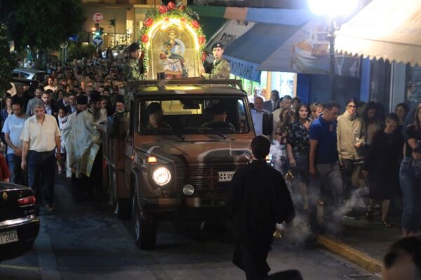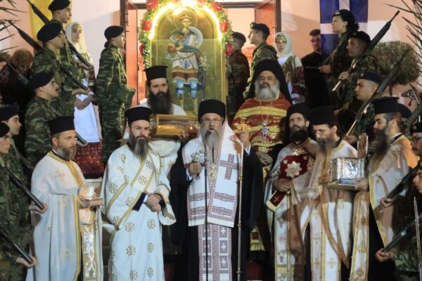 Ακολούθησε η λιτάνευση της ιεράς εικόνος του Μεγαλομάρτυρος Αγίου Δημητρίου του Μυροβλύτου επί στρατιωτικού οχήματος, των χαριτόβρυτων ιερών λειψάνων του, του Αγίου Νεκταρίου, του Αγίου Νέστορος και πολλών άλλων.