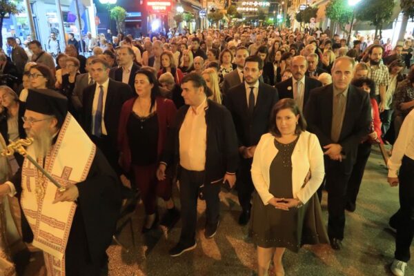 Στην ιερά τελετή το παρόν έδωσαν οι Βουλευτές κα Καραμανλή Α., κ. Σπανάκης Β., Κυρανάκης Κ., η Δήμαρχος του Δήμου μας κ. Μαρία Ανδρούτσου, ο π. Δήμαρχος κ. Παντελής Ειρηνάκης, Αντιδήμαρχοι, το Προεδρίο του Δημοτικού Συμβουλίου, Πρόεδροι Δημοτικών Παρατάξεων, τα μέλη του Δημοτικού Συμβουλίου, ο Διοικητής του Αστυνομικού Τμήματος, η Δημοτική Αστυνομία, οι Παραδοσιακοί Σύλλογοι “Αρκάδων” και “Κρητών”, το 1ο και 2ο Δημοτικό Σχολείο και το σώμα Προσκόπων. Η λιτάνευση της ιεράς Εικόνας ακολούθησε την εξής διαδρομή: Αγίου Δημητρίου – Θ. Κολοκοτρώνη – Στρ. Παπάγου – Καλλιθέας – Αγίου Δημητρίου.